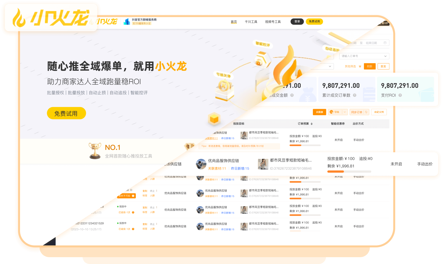 广州小火龙网络技术有限公司是一家专注于电商 SaaS 服务的创新型互联网企业,核心业务围绕电商场景提供全链路解决方案。注册资本1000万,定位为 “电商产业链技术服务商”,多年深耕电商投放SaaS领域以及抖音等主流电商平台,服务超30万商家,是抖音认证的五星服务商。为商家提供从管理、交易、营销等各场景的一站式解决方案;